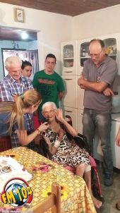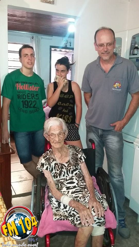 Angelina mora com o filho, nora e netos e vive bem. Ela está lúcida e no momento só não está andando, pois sofreu uma fratura. Ela e toda a família são ouvintes da 104!