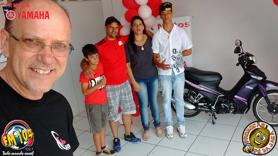 Emocionado, ele agradeceu a Deus pelo presente que recebeu da Rádio FM 104. “Sou ouvinte da Rádio FM 104 faz tempo, porém eu nunca imaginei que a rádio que tanto amo poderia me dar um prêmio tão grande. Obrigado Rádio FM 104, por realizar este sonho que era de dar uma moto para a minha esposa”, disse o ganhador.